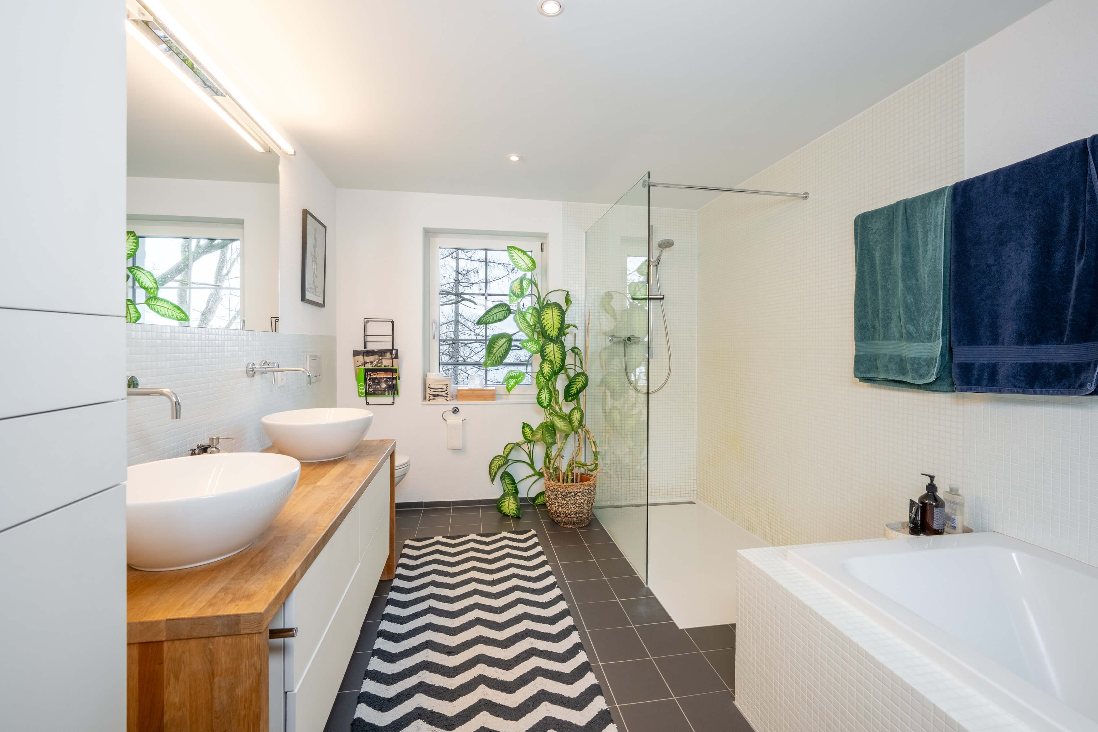 Im ersten Obergeschoss stehen Ihnen vier helle Schlafzimmer zur Verfügung, sowie ein separates Badezimmer. Das Elternzimmer hat zudem ein Bad-en-Suite mit Dusche und Badewanne, sowie eine Ankleide. Noch eine Etage höher befindet sich das ausgebaute Dachgeschoss, welches weiteren Platz für Ihre Ideen bietet.